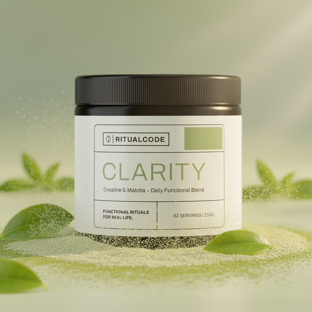 Sanfte Energie aus Matcha trifft auf funktionales Creatin. Ziel ist fokussierter Alltag ohne Nervosität und ohne Absturz.